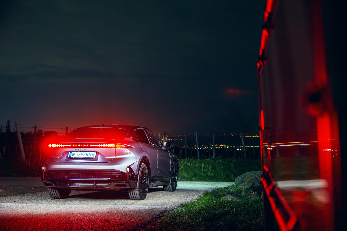 Das Außendesign wird von einer sportlich-eleganten Silhouette, einer charakteristischen LED-Lichtsignatur, adaptiven Matrix-Scheinwerfern und 20-Zoll-Leichtmetallrädern Cristal in Diamantées Noir Brillant mit Michelin Sport EV Reifen geprägt. Im Innenraum schaffen Alcantara und Nappaleder, beheizbare, elektrisch verstellbare Alpine Sportsitze mit perforiertem Alcantara-Bezug, ein von der Formel 1 inspiriertes Lenkrad und eine individuell anpassbare Beleuchtung ein sportliches Ambiente.